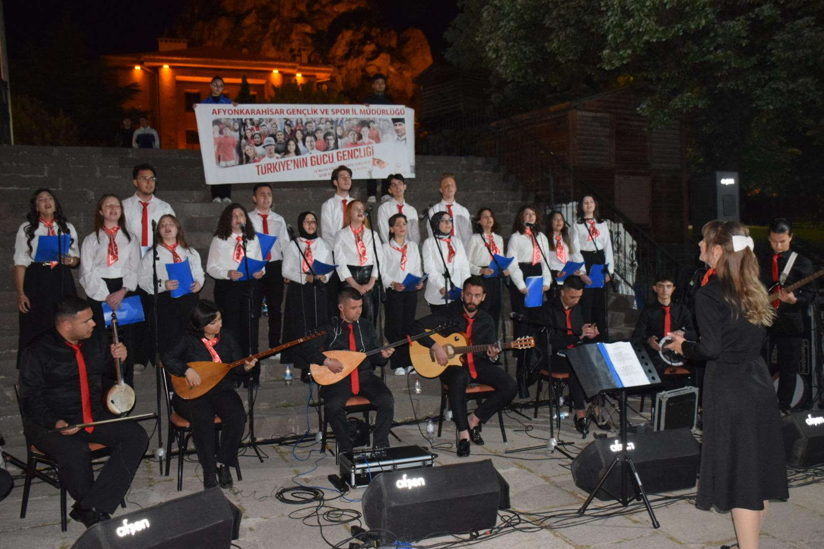 Yürüyüş boyunca marşlar söylenirken, kırmızı beyaza bürünen cadde ve sokaklar bayram coşkusunu yansıttı. Yürüyüş, Zafer Meydanı’nda sona erdi ve burada Afyonkarahisar GSB yurtlarında kalan öğrencilerden oluşan koronun müzik dinletisi gerçekleştirildi.